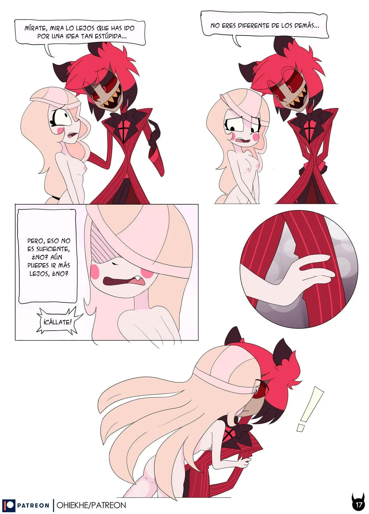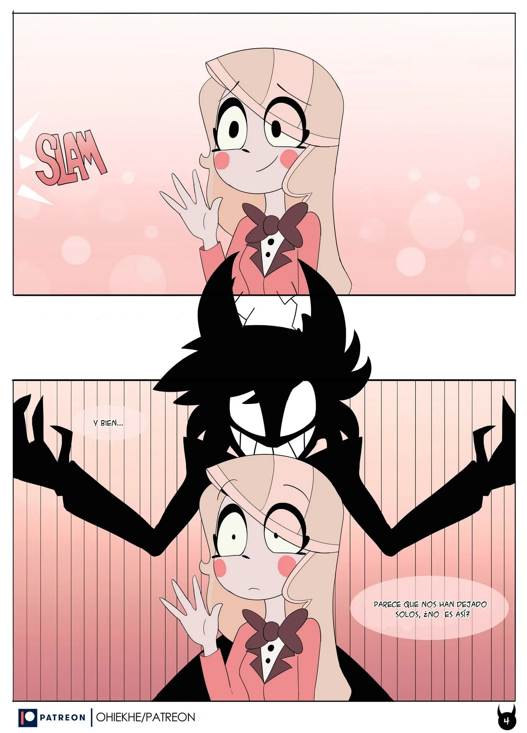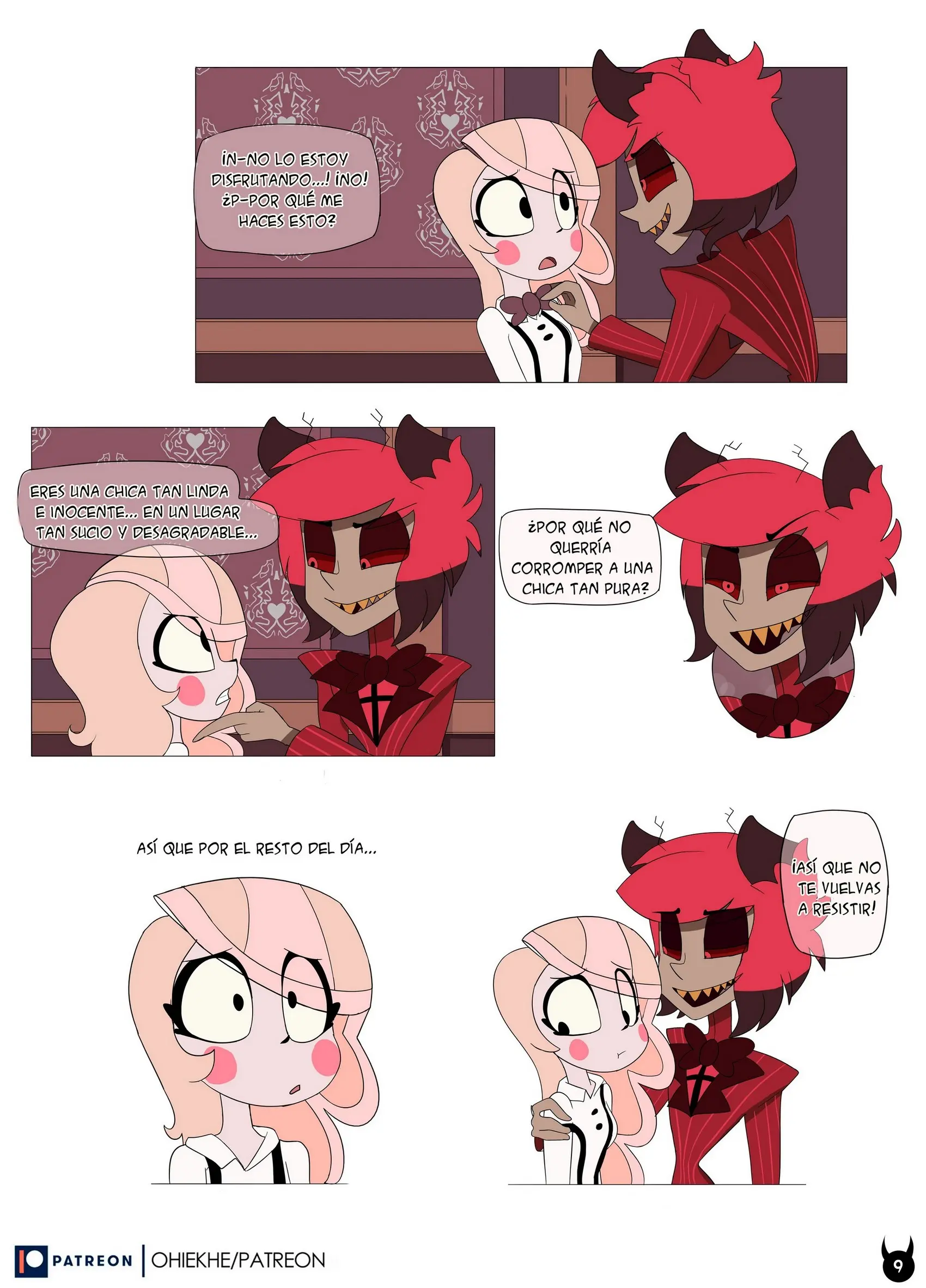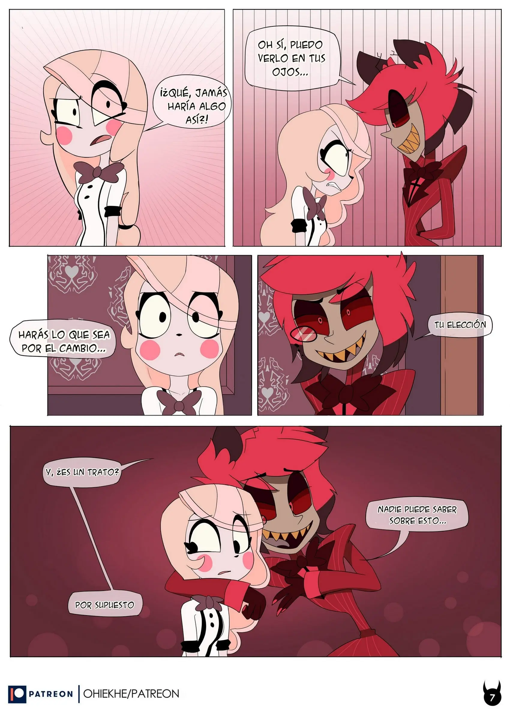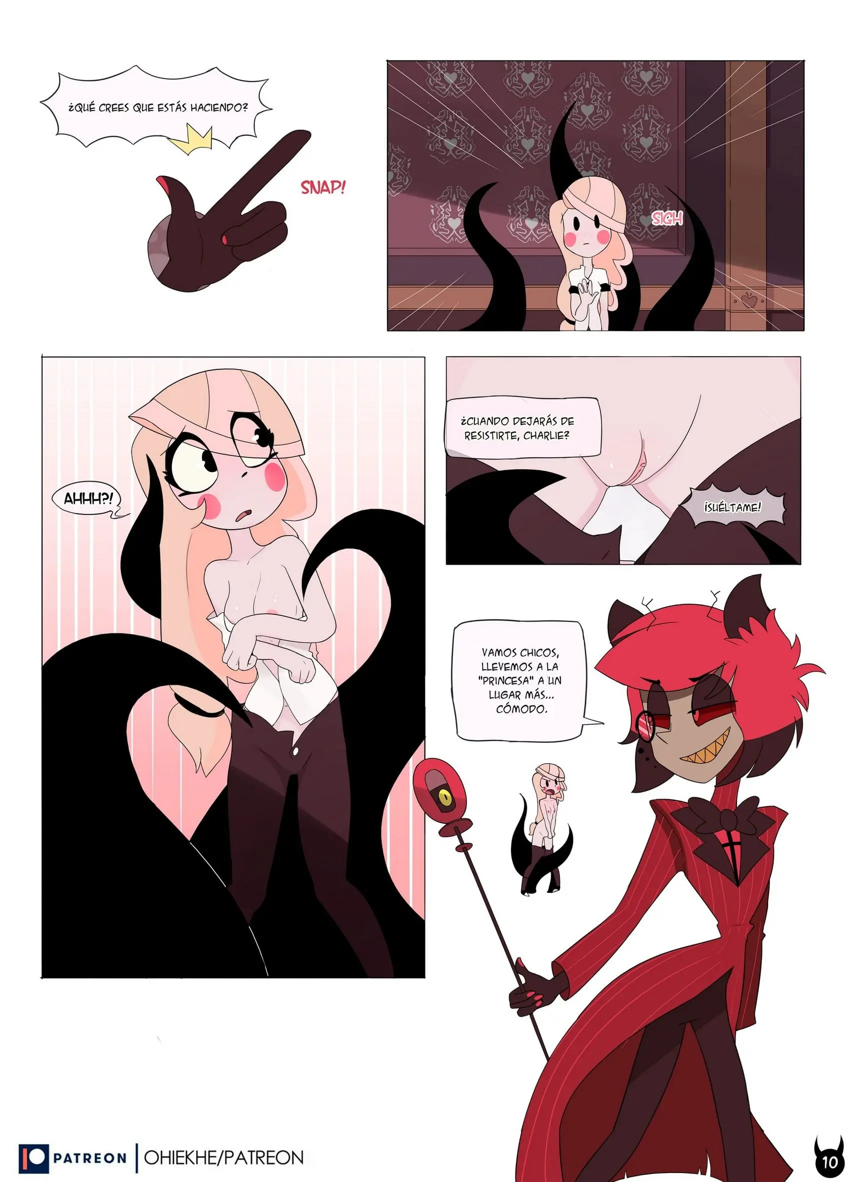 Charlie se ha molestado mucho y corre detrás de este. Ahora en forma de demonio, tomándolo del hombro y diciéndole que lo hará disfrutar. Alastor se niega y quiere correr, pero es demasiado tarde; Charlie es un demonio y se tiró encima de él.