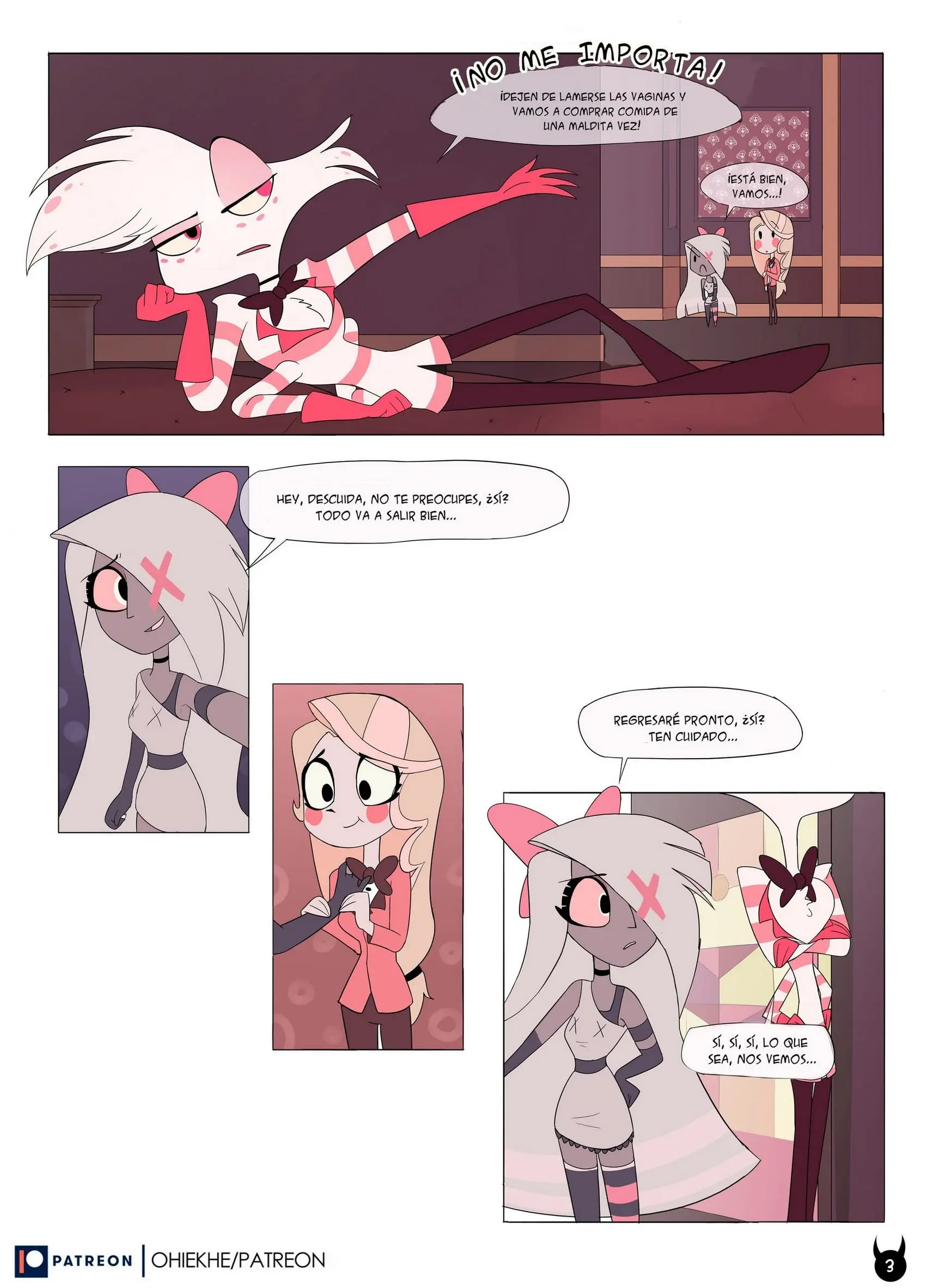 Vaggie se va en busca de una polla que el muy exigente Angel pueda comer, mientras que Charlie se queda en el hotel.
