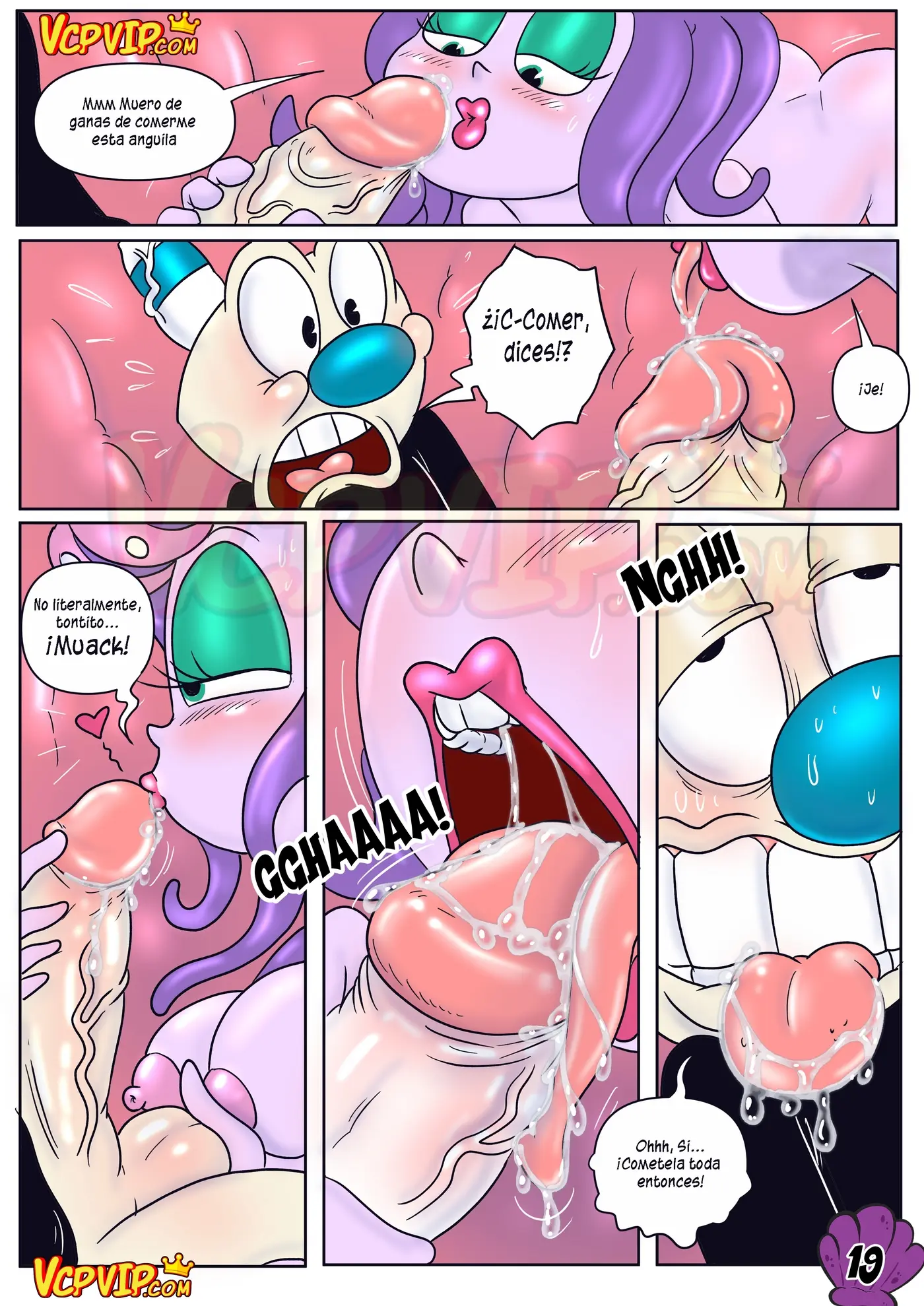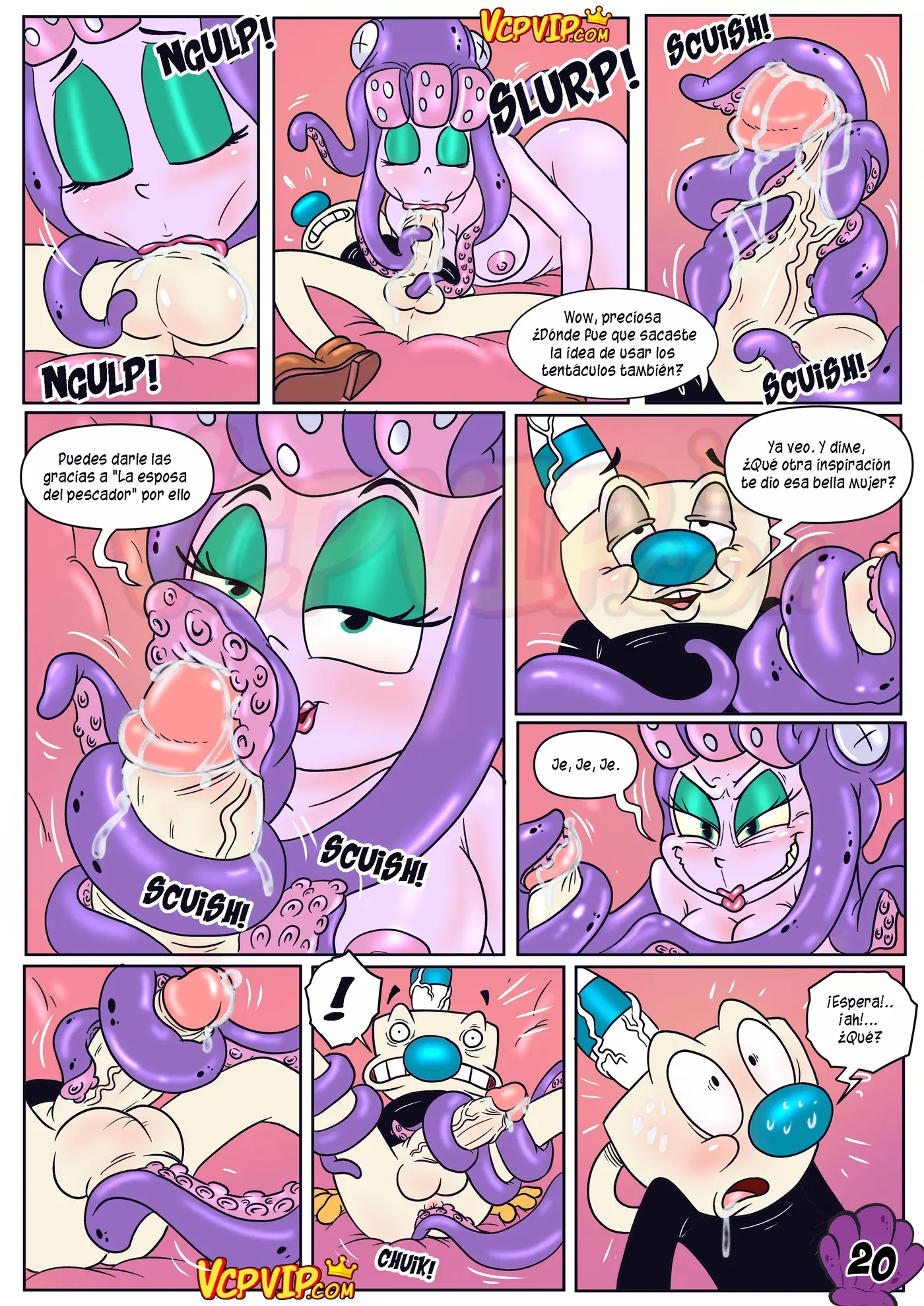 El que tenía sexo anal con ella, Cuphead, solo quiere terminar lo antes posible y rellenar su dona para darle el lugar al hermano para que también se divierta. Pero cuando Mughead estaba por penetrar el chocho de ella, los dos hermanos se transforman en galletas y son comidos por la Baronesa. Por fin han hecho efecto los dulces que ellos probaron en el cómic anterior.