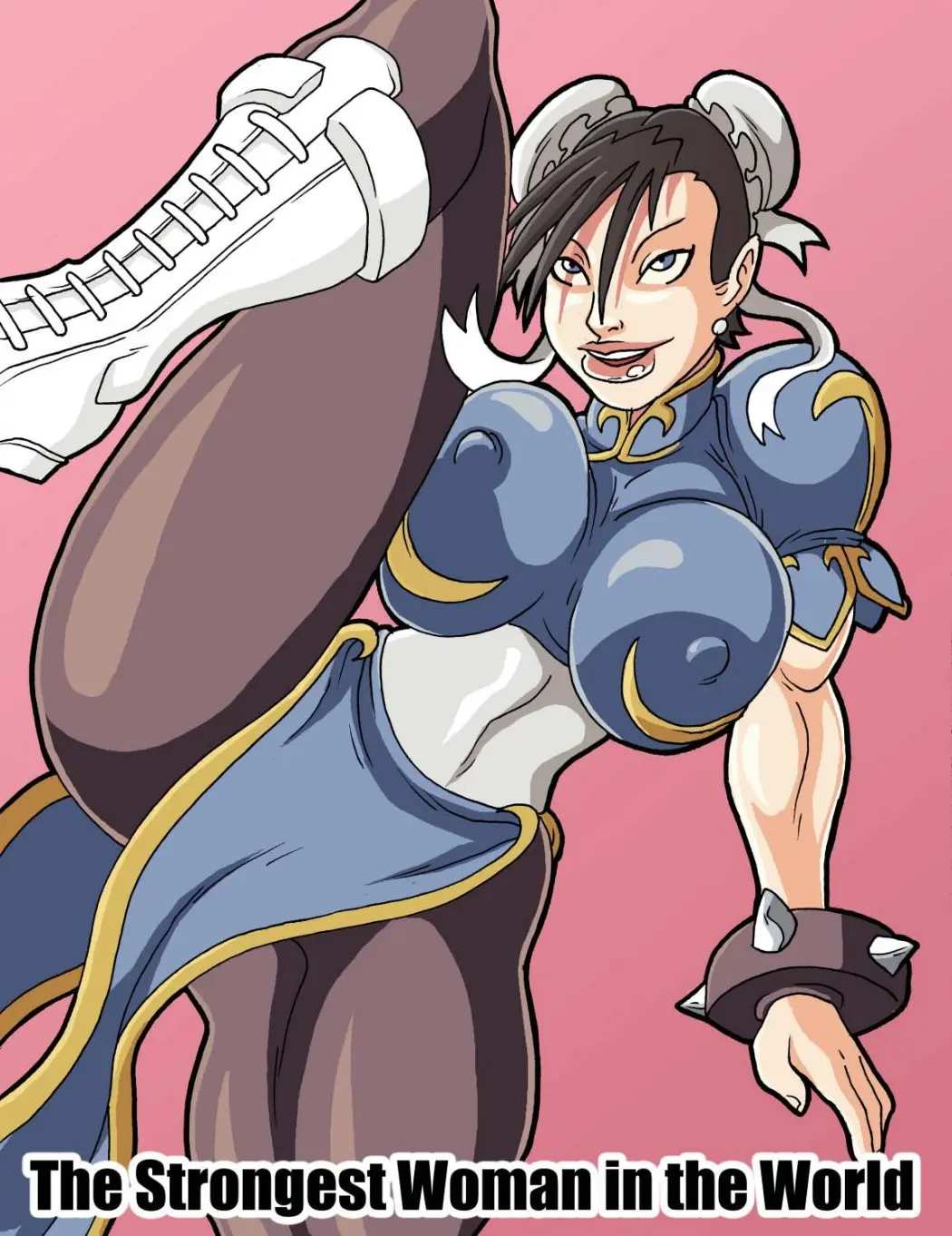 Su versión alterna le explica que ha sido débil por mucho tiempo, por eso para ella es fácil derrotarla. Sin embargo, ha traído su enorme polla y le hace probar con su boca a Chun-Li para endurecerla. Que con solo una probada consigue eyacular en la cara de la peleadora.