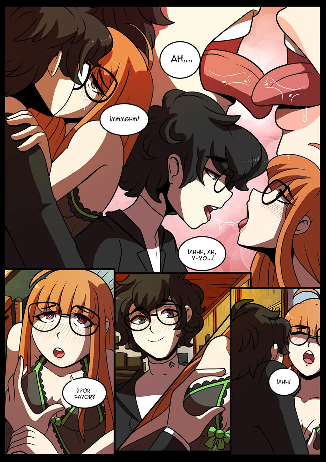 A ella le encanta que él piense que ella es linda por comprar cosas para él. Lo que la hace gemir mucho mientras la penetra en diferentes posiciones. Con él arriba, con ella abajo y hasta en cuatro patas. Haciéndola acabar y mojando la cama. Por eso, cuando es el turno de que Akira también lo haga, ella le da permiso para hacerlo adentro. De hecho, le pide por favor que lo haga. Una oportunidad que Joker no desperdiciará. Por algo Futaba no necesita un descanso luego de eso y quiere seguir cogiendo ahora que descubrió que era tan rico.