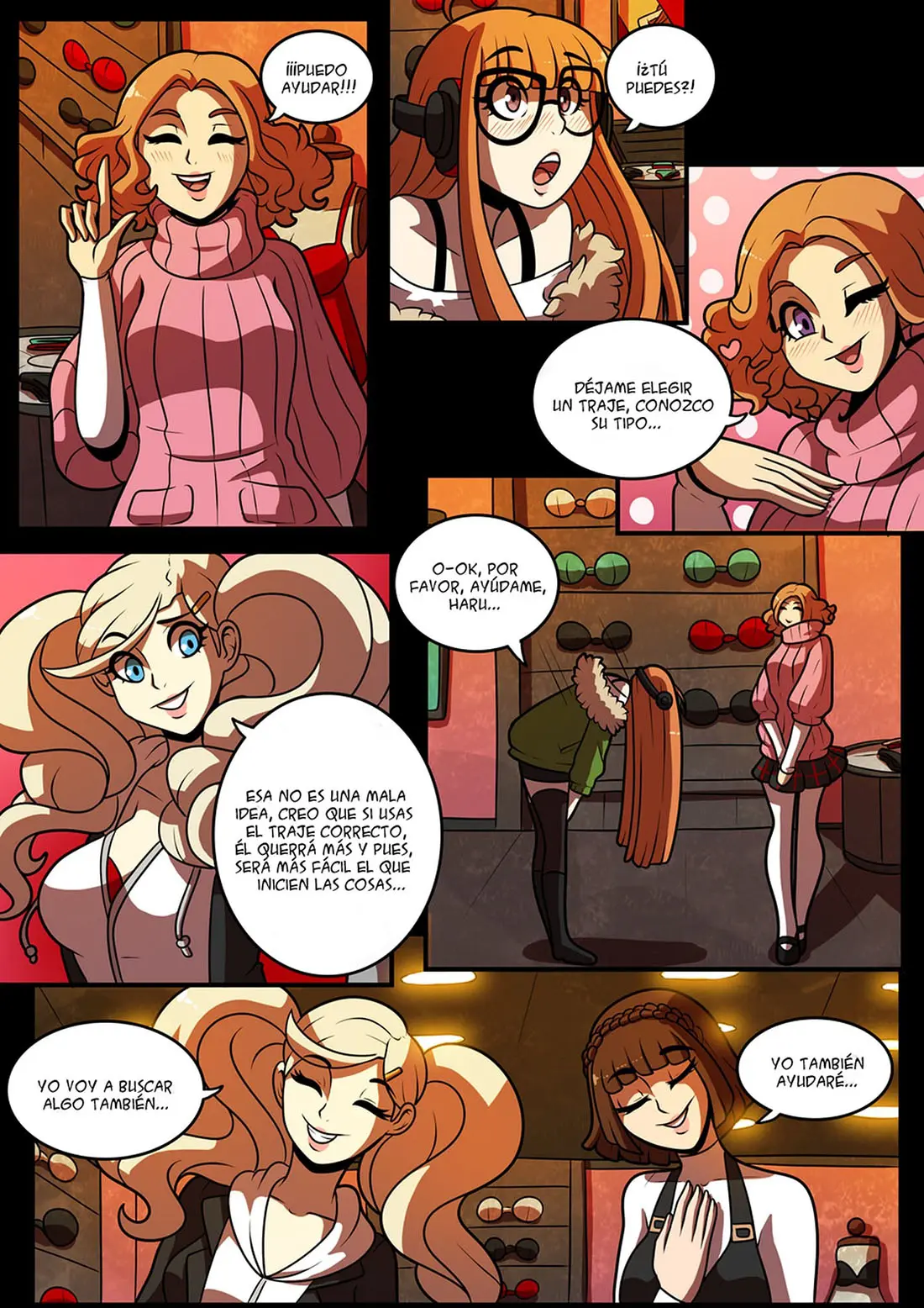 Las chicas de Persona 5 estaban comiendo en el centro comercial. Aunque Futaba se veía un poco mal debido a estar en un lugar con multitudes. Por eso todas proponen ir a una tienda para pasar el rato, una en la que no haya multitudes o chicos en ella.