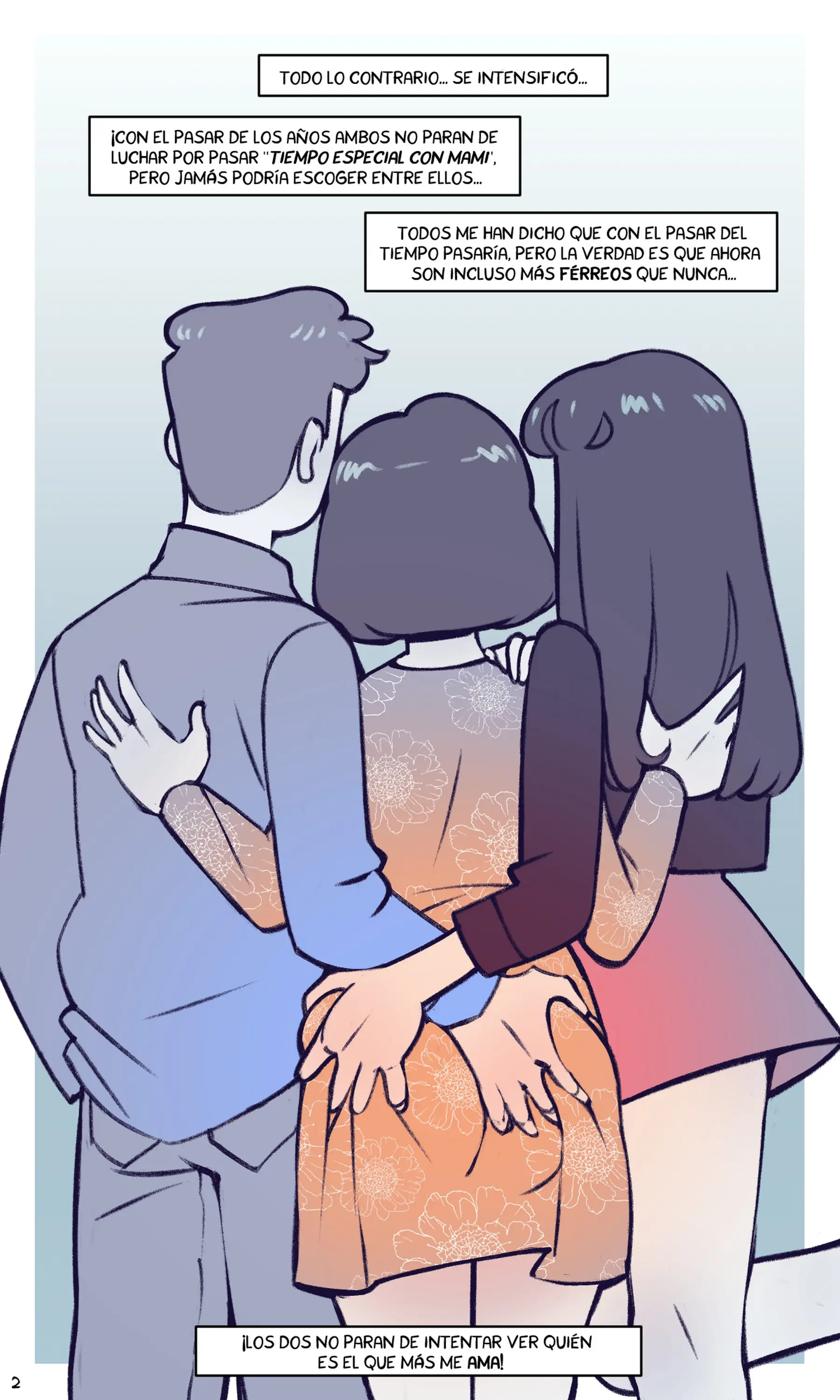 Al principio era lindo como ambos discutía por hacerle la vida más fácil a mamá. Uno se encargaba de limpiar la cocina y el otro de cortar el césped. Hasta que no tardaron en enfocar su energía en ella, dándole masajes de hombros o de pies.